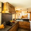 Reachable only by stairs, the entrance floor to the the Floor 1 is dedicated to the open-plan living area with a large living room with a fireplace, panoramic windows, and an exit onto the terrace (equipped in the summer). The terrace holds a breathtaking view over the valley, separated by a spacious dining room and an American-style fitted kitchen with two dishwashers, a microwave, two Nespresso machines, an oven, and a large two-door fridge with an ice maker.