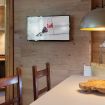 living, con un tavolo dalle linee contemporanee in grado di ospitare fino a 6 sedute ed un confortevole angolo con poltrone e divano in pelle smart tv e bluetooth speakers (possibilità di accedere al proprio Netflix, canali streaming con Hdmi).