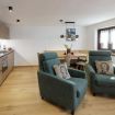 - Soggiorno a pianta aperta con cucina, zona pranzo, angolo salotto smart tv