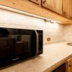 Angolo cucina attrezzato con lavastoviglie, macchina nespresso, microonde, forno e bollitore .