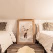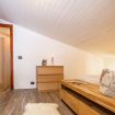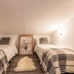 Le due camere da letto, dal caratteristico soffitto basso, sono intime e calde: una offre un letto matrimoniale, mentre l’altra è dotata di due lettini singoli. Il bagno, moderno e funzionale, dispone di una doccia e di una lavatrice, ideale per soggiorni più lunghi.