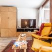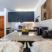 L’appartamento si trova al settimo piano, comodamente raggiungibile con l’ascensore, preceduto da una scala in ferro. L’accesso è su zona living accogliente con divano letto, un angolo cottura attrezzato e un tavolo da pranzo per cene conviviali.