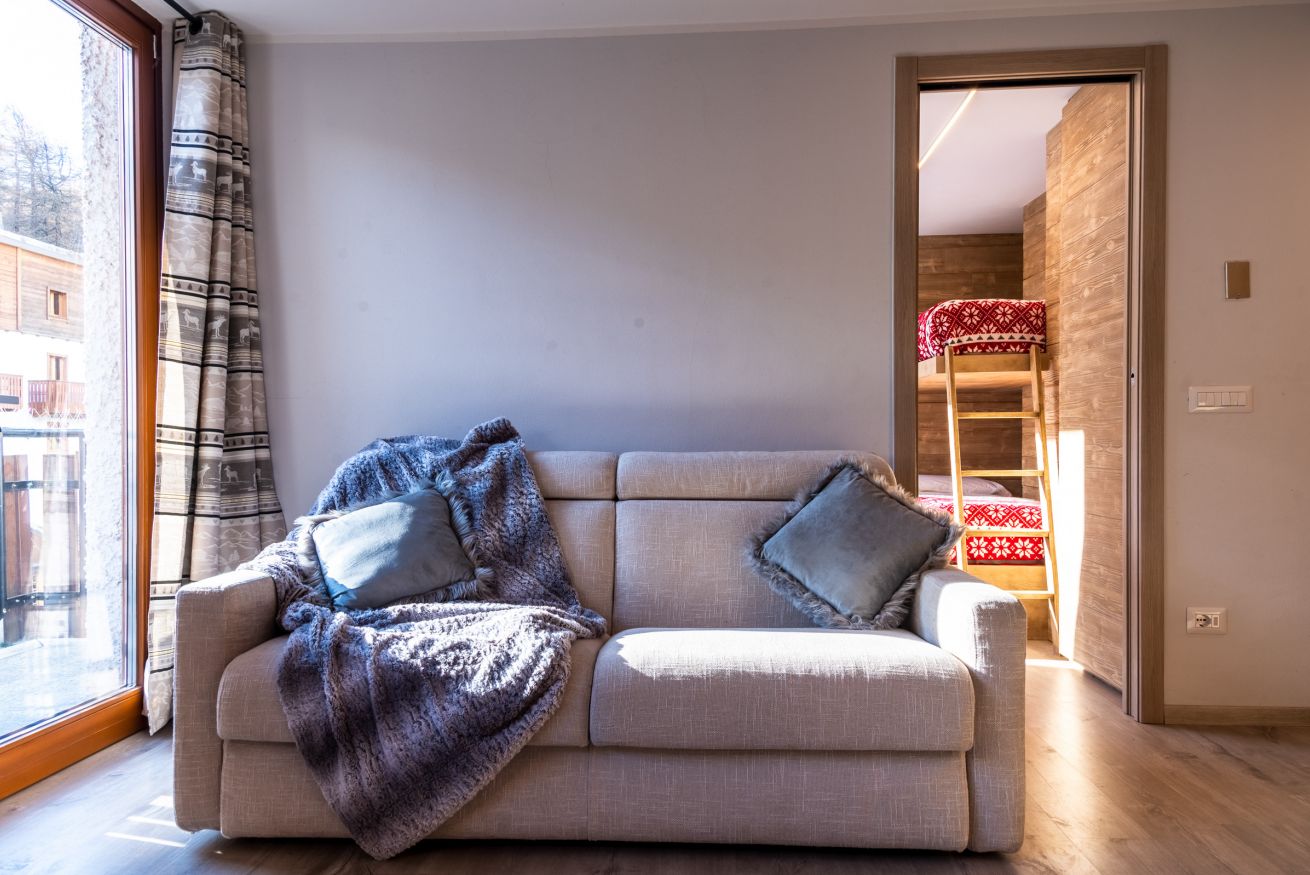 Gli interni sono moderni, ordinati e studiati per offrire un soggiorno comodo a famiglie e piccoli gruppi che desiderano muoversi a piedi e vivere il cuore di Cervinia con praticità.