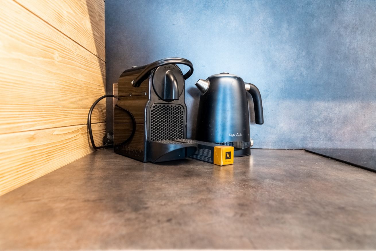• Cucina moderna attrezzata con lavastoviglie, piano a induzione, forno microonde, frigorifero, macchina del caffè, bollitore