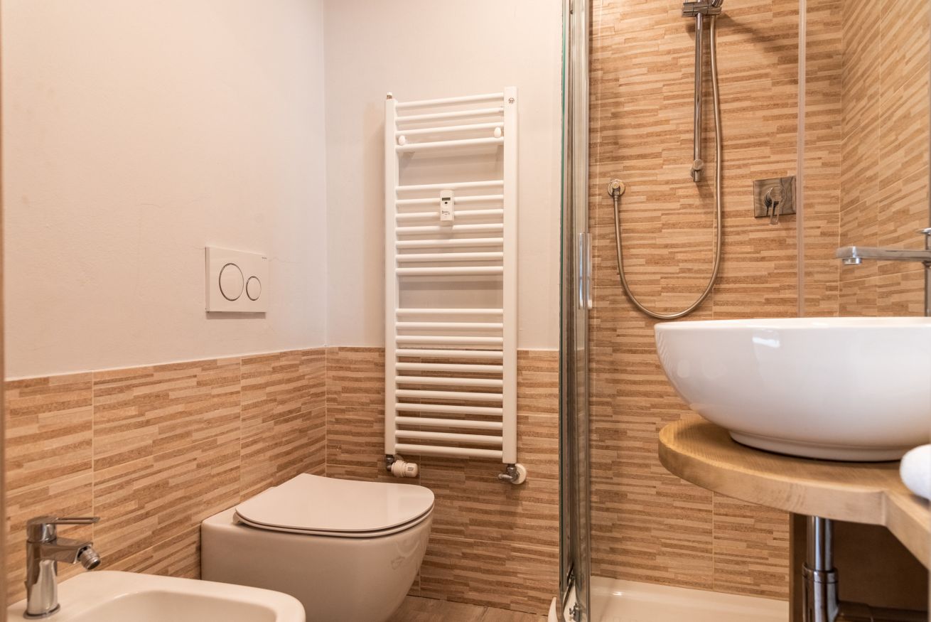 • Bagno completo con doccia, bidet, lavabo, WC e lavatrice