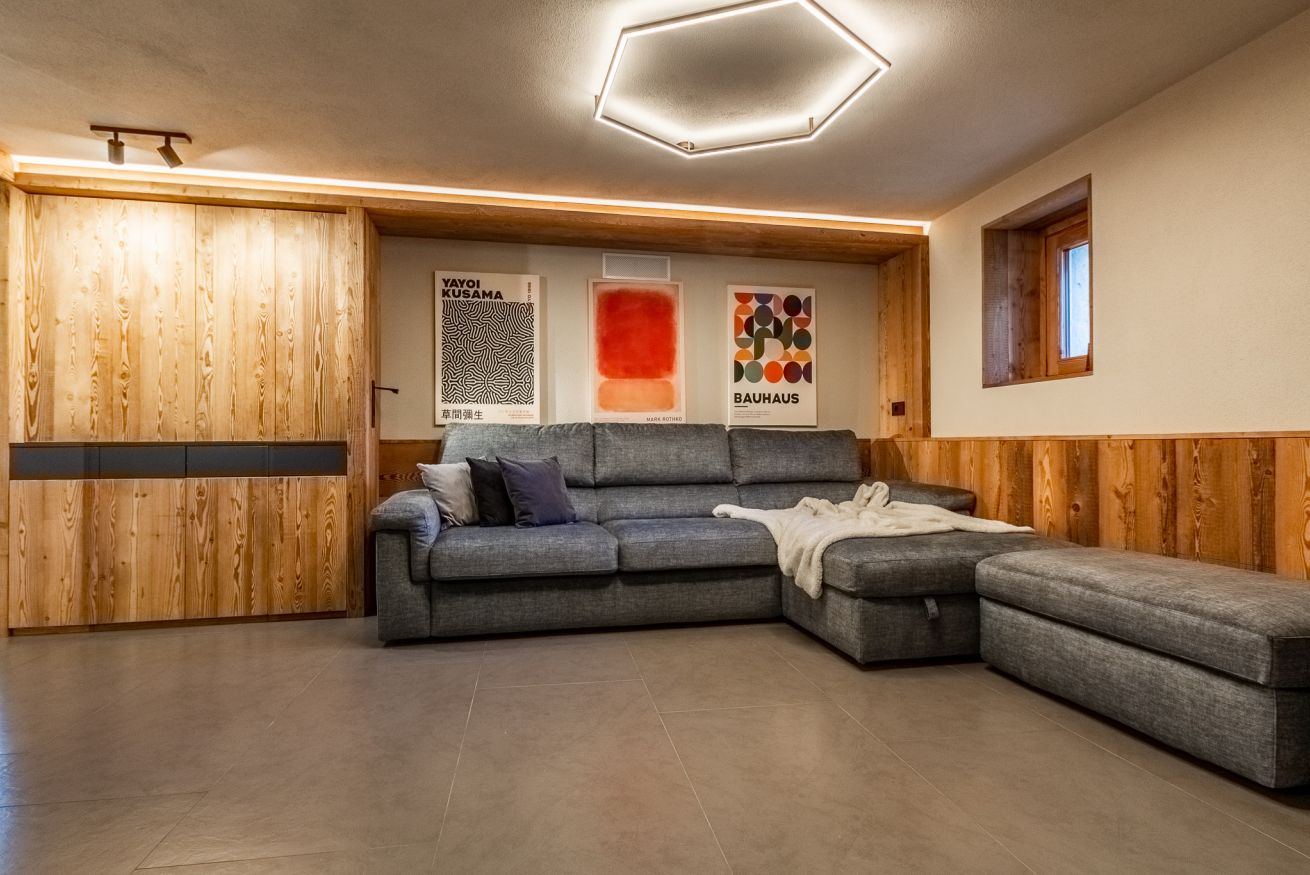 Con i suoi 80 m² distribuiti su due piani, offre ambienti separati e funzionali: due zone notte, due bagni e una zona living al piano superiore, perfetta per condividere la serata dopo una giornata all’aria aperta. Spazio, calore e praticità in un contesto alpino autentico.